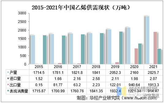 21年中国乙烯供需现状(万吨)